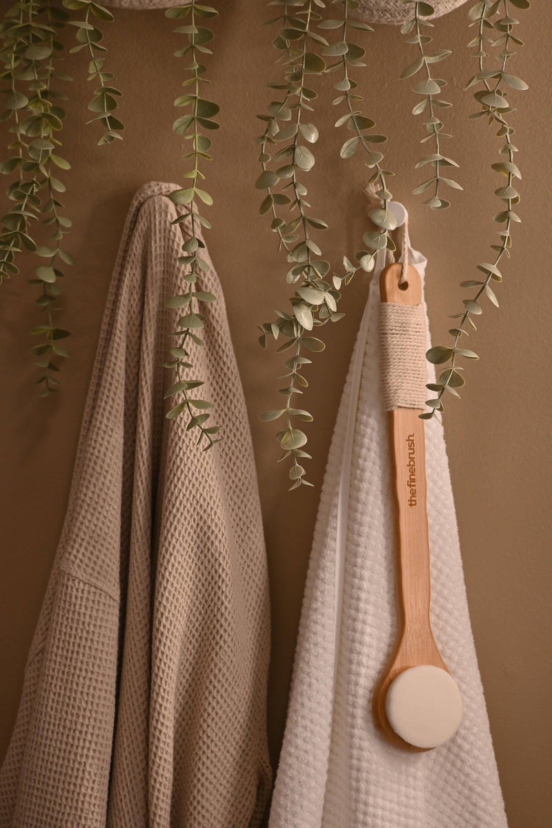 Your bathroom doesn’t need more plastic. We designed The Fine Brush to look calm, natural, and intentional, something you’d leave out, not hide away. Natural materials, a cotton-wrapped grip, and a form that feels as good in the hand as it looks on the hook. It’s not just a shower tool. It’s part of a slower, more thoughtful routine.